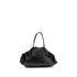 The Manta Maxi Shoulder Bag reinterprets an iconic archival silhouette in soft black calfskin napa leather. Its sculptural structure, with folded top edges and rigid wavy base, lends a bold, contemporary character. The high-frequency laminated McQueen logo stands out on the front. Oversized and charismatic, it can be carried by hand or on the shoulder thanks to its long tubular handles, combining style and versatility.
