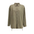 The Lace-Up Shirt by Balenciaga in structured cotton gabardine features an oversized silhouette with a contemporary and refined attitude. The classic shirt collar and dropped shoulders create a clean, relaxed line, while the side lace-up details add a subtle yet distinctive modern touch. Long sleeves with buttoned cuffs, an eight-button front closure, and a rounded hem complete the design, blending utilitarian elegance with contemporary tailoring. Made in Italy, it reflects premium craftsmanship and the brand’s minimalist aesthetic.