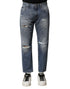 Dolce & Gabbana Blue Washed Tattered Straight Fit Denim Jeans