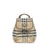 The Horseshoe mini Backpack by Burberry features a compact and functional design enhanced by a ribbon top handle and adjustable shoulder strap for versatile portability. The turn-up top flap with drawstring and magnetic closure provides practicality, while the exterior zippered pocket and interior pouch pocket offer essential organization. Brushed metal hardware and a leather Equestrian Knight Design label on the front complete the design, which is finished with an interior nylon lining.