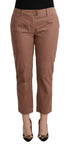Genießen Sie den Inbegriff zeitgenössischer Eleganz mit dieser exquisiten, verkürzten Hose mit mittlerer Taille von Costume National. Hergestellt aus hochwertiger 100 % Baumwolle, verspricht diese Hose eine schmeichelhafte, maßgeschneiderte Passform und ganztägigen Tragekomfort. Diese Hose vereint Stil und Funktionalität perfekt. Sie ist in einem vielseitigen Braunton gehalten und verfügt über einen klassischen Knopf- und Reißverschluss sowie dezente Logodetails, die die Liebe zum Detail der Marke widerspiegeln. Verwandeln Sie Ihre Garderobe mit diesem zeitlosen Stück, das moderne Eleganz ausstrahlt.