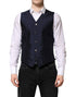 Dolce & Gabbana Dark Blue Logo Wool Formal Men Waistcoat Vest