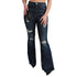 Blue Denim Cotton Stretch Flared Jeans, Made from high-quality durable denim, Flattering and comfortable fit, Retro-inspired flared silhouette, Stretch fabric for ease of movement, Versatile and easy to dress up or down, Classic blue color, Perfect for casual outings or nights out, Material: 98% Cotton 2% Elastane Cotton
