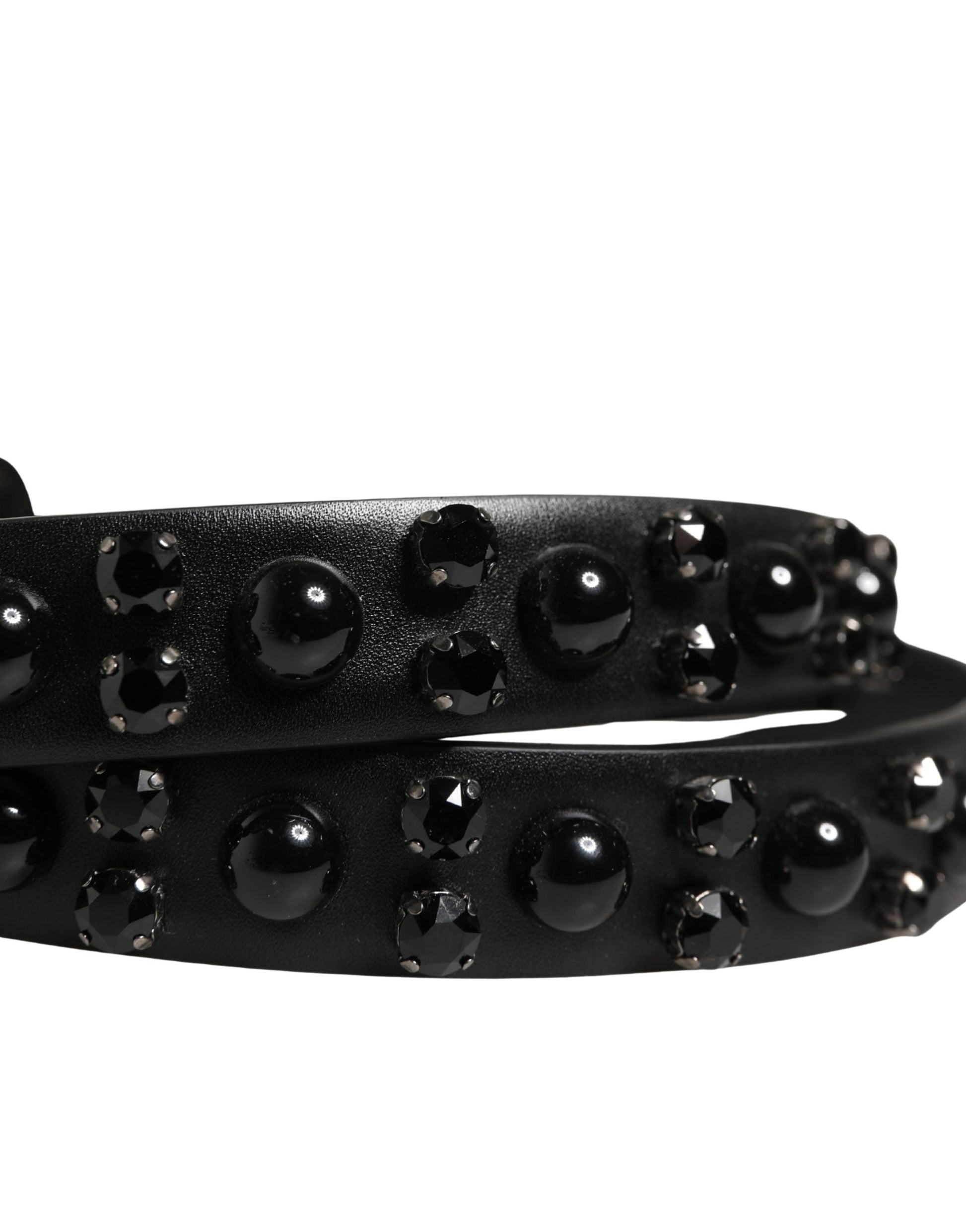 Dolce & Gabbana Men Black Calf Embellished Metal Buckle Belt