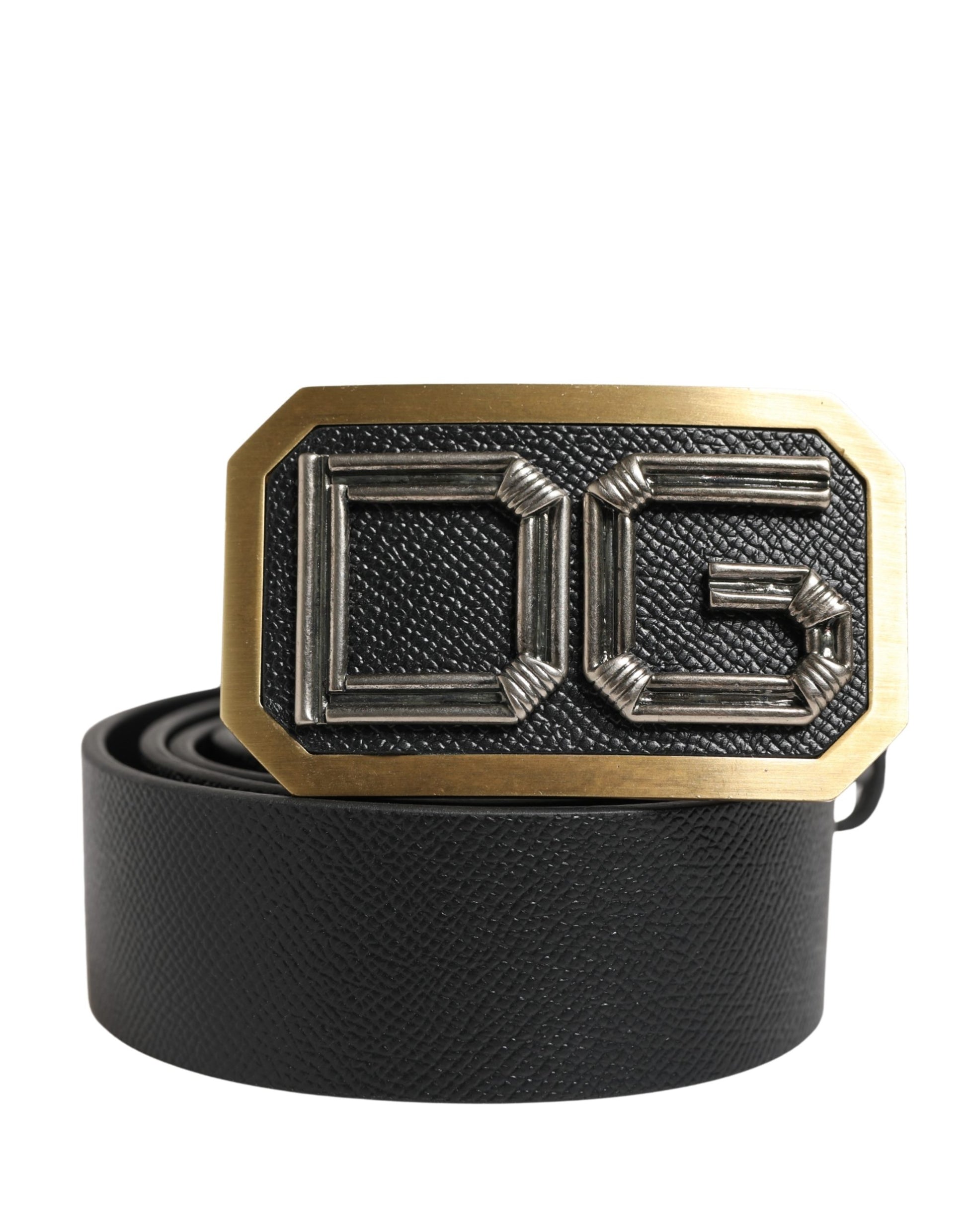Dolce & Gabbana Men Black Leather DG Logo Metal Buckle Belt
