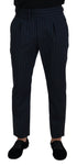 Entdecken Sie den Inbegriff italienischer Handwerkskunst mit dieser eleganten gestreiften Hose von Dolce & Gabbana. Aus luxuriöser 100 % Schurwolle gefertigt, vereint diese Hose klassischen Charme mit modernem Stil – perfekt für den Gentleman, der Wert auf Eleganz legt. Hergestellt in Italien, zeichnen sich die exquisiten Logodetails aus, die ihre Designerqualität unterstreichen.