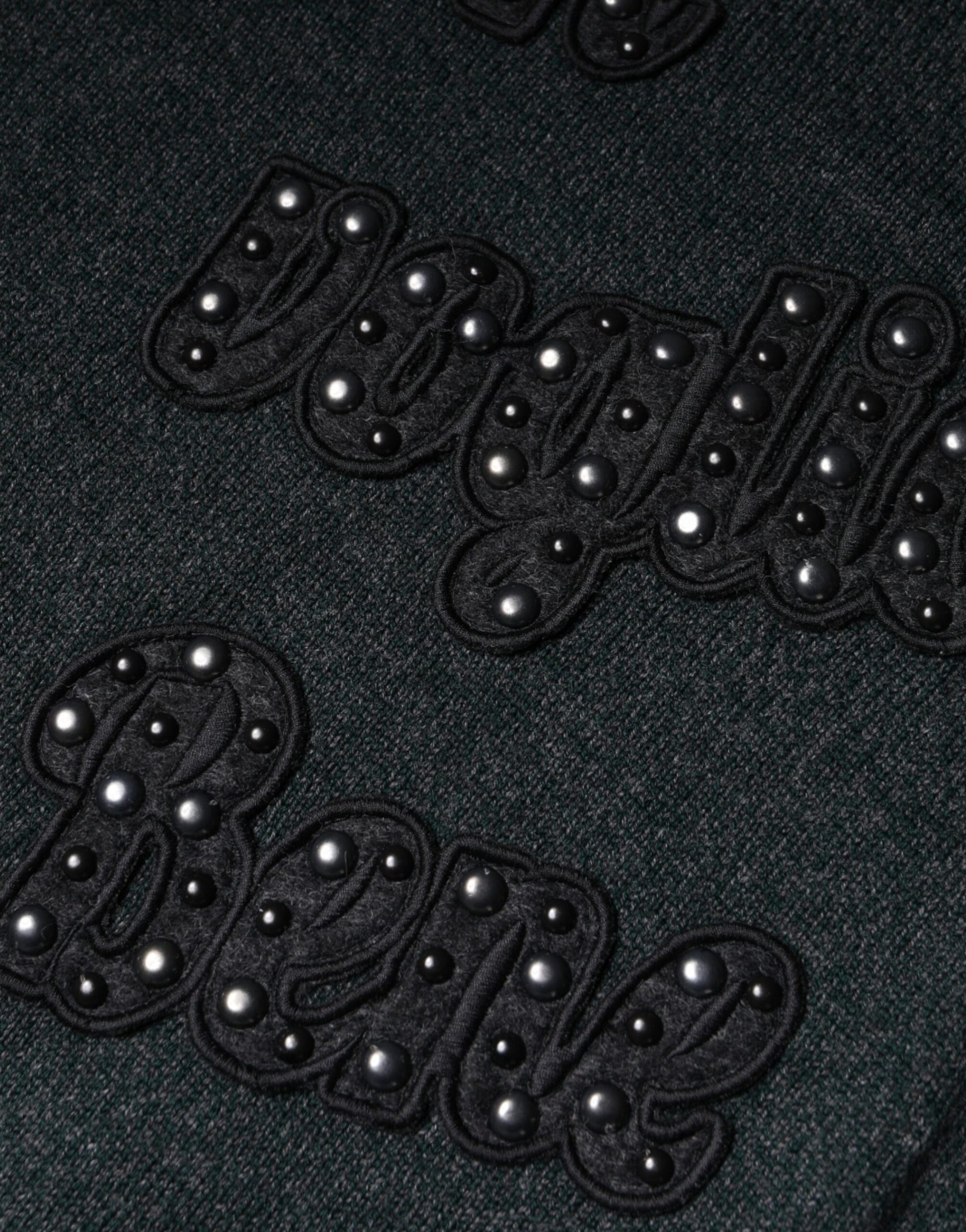 Grauer Pullover mit Rundhalsausschnitt und Verzierung