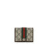 The Ophidia small Wallet by Gucci is crafted from soft beige and dark brown GG Supreme leather with brown leather trim and light gold-tone hardware. The brown taffeta lining, Double G detail, and Web stripe complete the iconic design. Inside, it features five card slots, one open pocket, one zip pocket, and one bill compartment, while the snap closure ensures practicality and security.