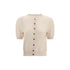 The Marene Cardigan by Lisa Yang is a short-sleeve knit crafted with a refined, minimalist aesthetic. Designed with a crew neckline and a front button closure, it features ribbed trims at the hem and sleeves that add subtle definition. A versatile and polished piece, it seamlessly complements any wardrobe.
