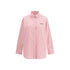 The striped poplin Shirt blends classic elegance with contemporary details. It features long sleeves with small buttons, a traditional shirt collar and a front button closure. The embroidered logo adds a distinctive touch, while the balanced hem, with the back slightly longer than the front, offers a modern and refined fit.