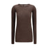 The long-sleeved T-shirt by Rick Owens is hip-length and has a slim fit that follows the silhouette. The ribbed crew neck, raw-cut hem, and cuffs add a distinctive, modern touch. The single seam detail running down the center back is the designer’s signature, making this T-shirt a unique and unmistakable piece. Perfect for a minimalist yet avant-garde look.