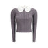 The lace collar knit Top by Self Portrait features a refined grey pointelle knit, enhanced by a contrasting cotton broderie anglaise collar that adds a charming, romantic detail. Designed with a bodycon silhouette, it fits true to size and is crafted from a stretch fabric for comfort and ease of wear. The button-down front completes the look, making it perfect to style with baggy jeans for a modern contrast and an effortlessly chic date-night outfit.