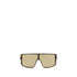 The Havana T-Bar sunglasses by Alexander McQueen feature a bold silhouette, with a warm-toned tortoiseshell acetate frame paired with brown gradient lenses. The oversized visor shape is enhanced by gold-tone metal temples, designed as elegant T-Bars and engraved with the McQueen logo.