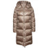 Piumino lungo trapuntato People Of Shibuya in tessuto tecnico ultraleggero con trattamento 'pearl finish'. Imbottitura in piuma d'oca 90/10. Zip centrale pressofusa a doppio cursore con finitura oro e nuovo logo rotondo. Aperture laterali a soffietto con zip pressofuse effetto metallo. Tasche esterne a filetto con bottone magnetico invisibile. Logo applicato in lycra 3D in tono colore. Cappuccio con doppio bottone automatico. Dettagli catarifrangenti ad alta visibilità.