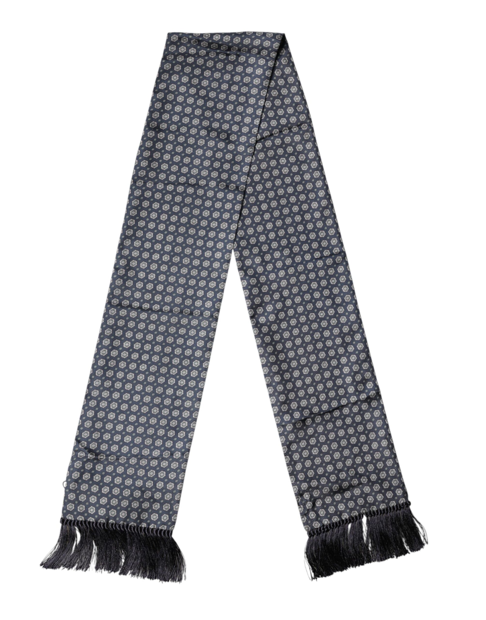 Dolce & Gabbana Blue Patterned Silk Fringes Foulard 138cm x 15.5cm Scarf