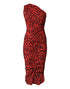 midi sheath dress features a striking red leopard print for a confident, statement-making look. Tailored to perfection, it combines a flattering silhouette with the brand’s signature Italian glamor and allure.