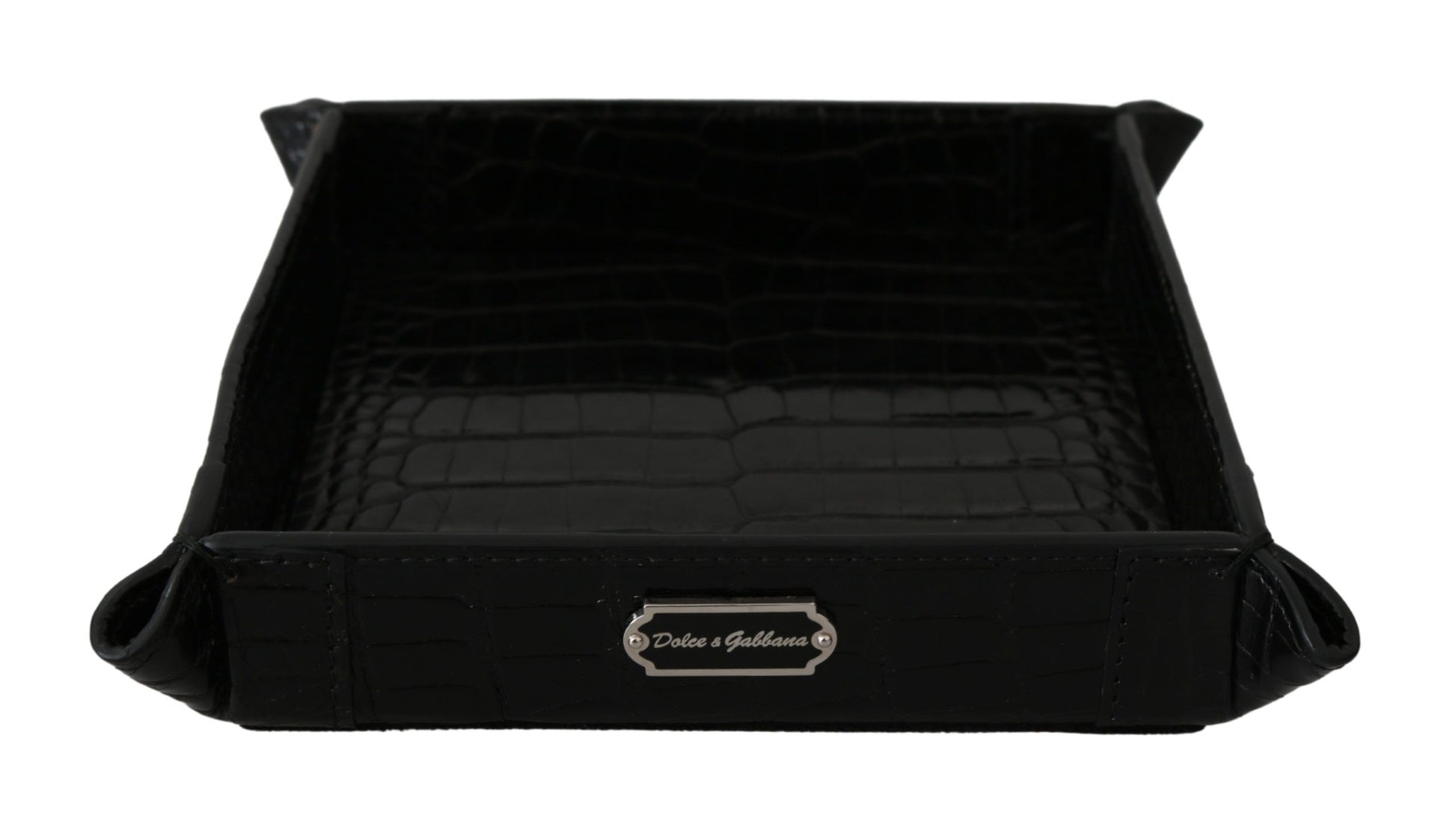 Concedetevi l'opulenza di Dolce & Gabbana con questo lussuoso vassoio in pelle nera con motivo. Perfetto per aggiungere un tocco di raffinatezza alla vostra casa, funge da squisito contenitore per le vostre chiavi, soldi o come elegante pezzo decorativo. Realizzato artigianalmente in Italia, è una testimonianza dell'impegno del marchio per la qualità e lo stile.