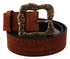 Accentua la tua vita con il lusso e lo stile di questa squisita cintura di Dolce & Gabbana. Realizzata in pelle scamosciata di prima qualità in una ricca tonalità di marrone, questa cintura è impreziosita da borchie dorate e una fibbia in metallo dorato, aggiungendo un tocco di eleganza a qualsiasi outfit. Perfetta per le donne che apprezzano i dettagli più raffinati e l'artigianato Made in Italy.
