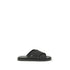 The Gancini Sandals by Ferragamo are an elegant reinterpretation of casual style, designed to offer both comfort and refinement. The double cross strap across the foot is decorated with woven leather panels, adding a distinctive and sophisticated detail. The contoured, padded insole ensures excellent comfort, while the rubber sole with a custom design guarantees stability and durability. The small Gancini ornament on the side adds the brand’s iconic touch, elegantly completing the design.