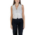 The Morgan De Toi women’s blouse, model 242-OPLI, embodies elegant and contemporary style, perfect for any occasion. Crafted from 100% polyester, this sleeveless blouse features a refined classic collar and vertical pleats on the front, adding a sophisticated touch to your look. The front closure is enhanced by a row of decorative buttons, offering both charm and practicality. The slightly flared cut and fitted waistline accentuate the feminine silhouette, making this blouse ideal for both professional outfits and more casual combinations. The lightweight, soft fabric ensures comfort and breathability throughout the day.