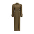 The silk Trench Coat by Petar Petrov combines sophisticated elegance with contemporary lines. Made from silk, it features a wide classic collar, slightly padded shoulders, and a midi length that flatters the silhouette. The side button closure and adjustable buckle belt allow for a tailored fit, while the two side pockets add practicality without compromising on style. Perfect for refined looks with character.