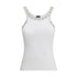 The Coriandoli Top by Pinko brings a refined sense of femininity through its ribbed cotton jersey construction. The deep neckline and straps are embellished with hand-applied crystals, rhinestones and glass details that illuminate the design with crafted brilliance. Ideal as an under-blazer piece for tailored ensembles or paired with statement denim, it adds a sophisticated touch that elevates any outfit with ease.