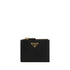 The leather Wallet by Prada combines elegance and functionality in a compact, refined design. Inside it features card slots, a coin compartment with snap-button closure and a compartment for banknotes. The front features the iconic triangular enameled plaque with the brand’s logo embossed on it, giving the wallet a distinctive and instantly recognizable touch.