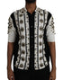 Camicia in seta bianca e nera con cristalli e pietre tempestate