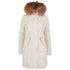 Piumino lungo trapuntato Yes Zee in tessuto softshell, chiusura con zip e bottone, due tasche anteriori, cappuccio in pelliccia