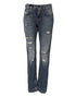 Gorgeous brand new, 100% Authentic Dolce & Gabbana mid waist tattered denim jeans with DG heart rhinestone embellishment.