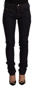 GF Ferre Black Mid Waist Cotton Denim Skinny Jeans