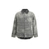 The D-ELMO-FSH Jacket by Diesel, a key piece from the Runway Show, is crafted from 100% cotton denim featuring a striking houndstooth pattern in black and grey tones. Designed with a relaxed straight-cut silhouette, dropped shoulders, and a shirt-style collar, it’s finished with a metal zip closure and D-shaped pullers. Laser techniques, burnt effects, and floating threads add a tactile texture and depth to the fabric, showcasing Diesel’s unconventional creativity and innovative craftsmanship.