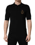 Dolce & Gabbana Black Heraldic Crest Patch Silk Polo T-shirt