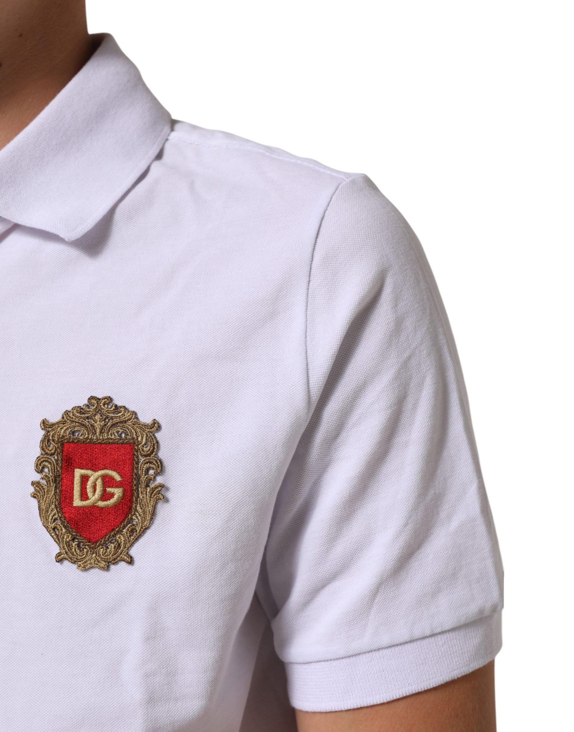 Dolce & Gabbana White Cotton Crest Embroidery Polo T-shirt