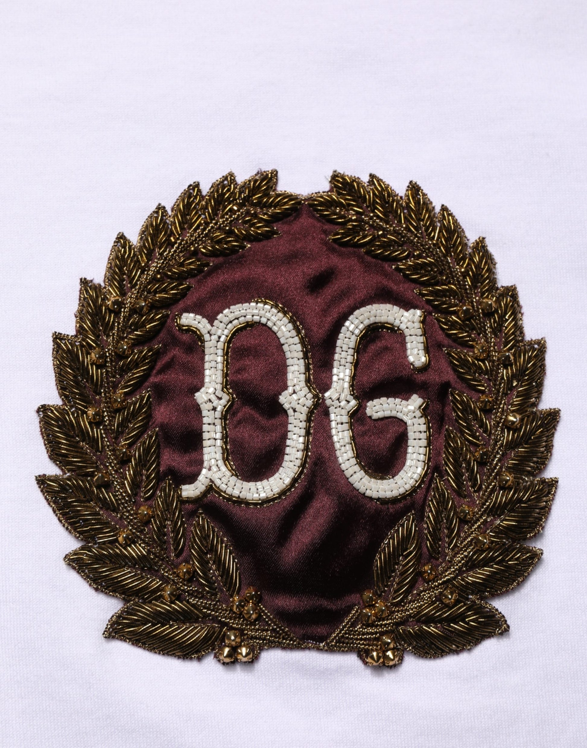 Dolce & Gabbana White DG Leaf Embroidery Crew Neck T-shirt