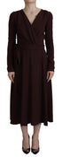 Dolce & Gabbana Brown Wrap Long Sleeve Midi Stretch Dress