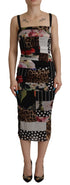 Dolce & Gabbana Multicolor Pachwork Midi Floral Silk Leopard Bodycon Dress