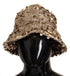 Dolce & Gabbana Gold Silk Sequin Embellished Designer Brim Bucket Hat
