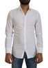 Dolce & Gabbana White Cotton Slim Fit Formal Dress GOLD Shirt