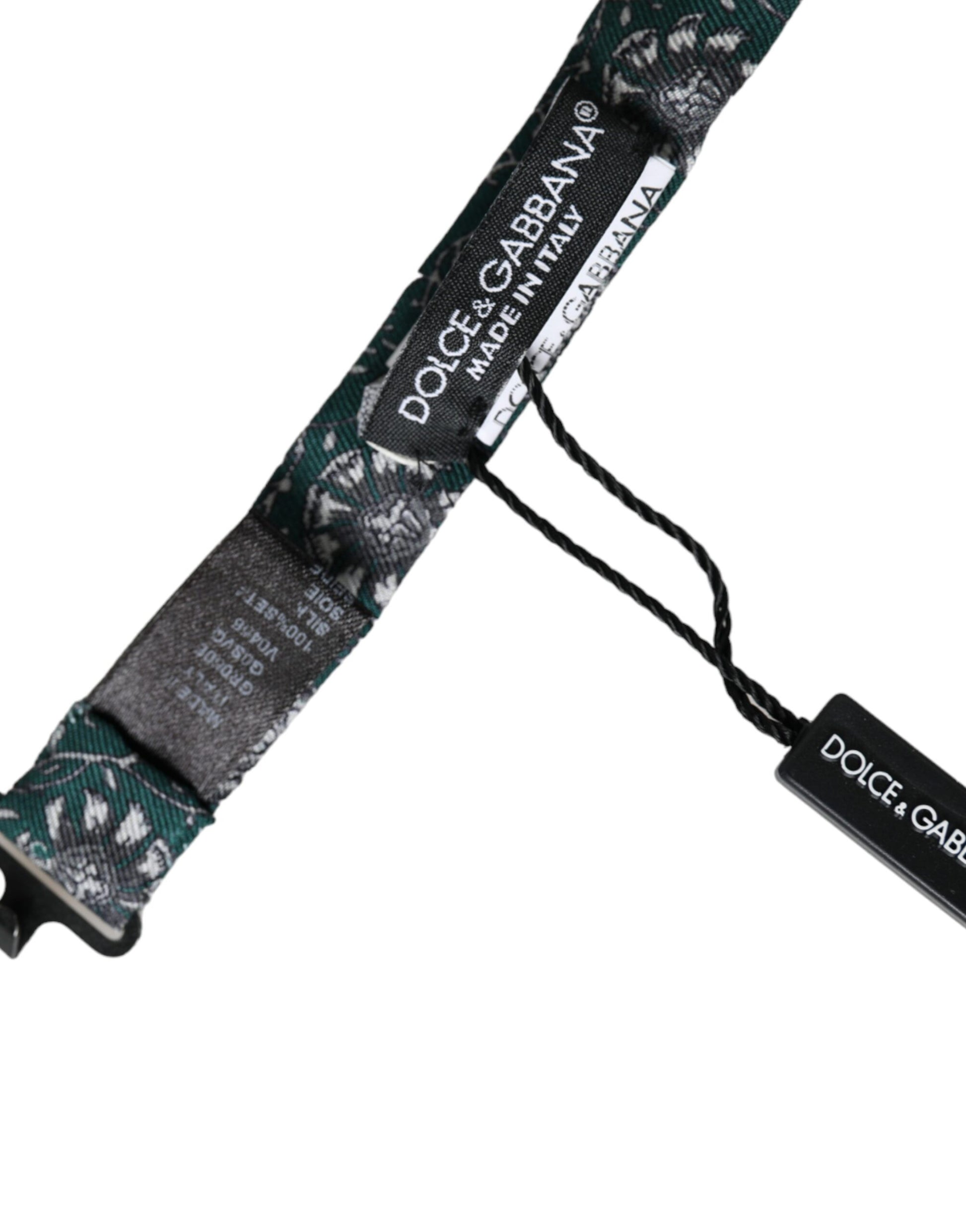 Dolce & Gabbana Green Silk Floral Adjustable Neck Men Bow Tie
