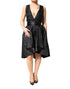 dress featuring an elegant black jacquard fabric that adds subtle texture and sophistication. Designed with a deep V-neckline and sleeveless silhouette, it offers a chic, modern look perfect for evening events or special occasions. Stylish, refined, and effortlessly bold.
