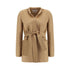 The Harold Jacket by Max Mara is crafted from pure camel double drap, finished with tailored topstitching for a refined look. This unstructured robe-style design features patch pockets, long sleeves, an unlined construction, and a removable belt that enhances the figure with understated elegance.