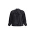 The Leonida silk Blouse features a loose, flowing fit with batwing raglan sleeves that add lightness to the design. The V-neckline is enhanced by a bow-tie scarf collar, while the high cuffs feature an elegant covered side button. At the back, a center-cut pattern and a longer asymmetrical hem complete the garment, which is embellished with a removable metal jewel loop.