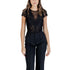 The Morgan De Toi 201-DONAO.N women’s bodysuit is an elegant and refined piece, perfect for those who want to add a touch of femininity and style to their wardrobe. Made from 86% polyamide and 14% elastane, this bodysuit offers a comfortable, form-fitting silhouette that enhances your figure. The design features delicate sheer lace with a floral pattern and polka dot details, short sleeves, and a round neckline, making it ideal for both special occasions and sophisticated daytime looks. The high elasticity of the materials ensures freedom of movement and a lightweight feel on the skin. A versatile garment that pairs easily with tailored trousers or skirts for always flawless outfits.