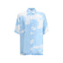 Moschino’s silk Shirt with cuban collar is a sophisticated and contemporary piece. Short-sleeved, it features a front button closure, side slits and a sky-inspired pattern with white clouds. An oversized fit completes the design for a sleek and modern look.