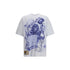 The cotton T-Shirt with print by PDF Channel is designed for those who appreciate unconventional elegance with a contemporary edge. Crafted from high-quality, slightly structured cotton, it combines softness with durability. The white base contrasts sharply with the expressive blue-toned print depicting a figure holding a judge’s gavel and an unfurled scroll, enhanced by the gothic “Maledetto” lettering. The oversized silhouette with short sleeves and a classic crew neckline ensures freedom of movement, making it suitable for everyday wear as well as more elevated styling.