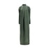 The Interlude Dress by Petar Petrov is crafted from lightweight silk satin in Jaguar Green. Front pleats allow the fabric to drape softly, creating a fluid, feminine silhouette. Clean shoulders, relaxed long sleeves and a mandarin collar with slender scarf-like ties define the design. A partial front opening and in-seam pockets complete this airy, elegant piece.