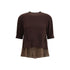 The Denim detail Sweater by Sacai combines casual style with tailored construction. Featuring 3/4 sleeves and a ribbed crew neck, it features an original double-layered design with denim inserts at the bottom, giving the garment a distinctive and contemporary layered effect.