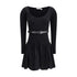 Self-Portrait’s chenille knit Dress expresses timeless elegance through soft lines and refined details. Made of stretchy black chenille, it features a boat neckline, long sleeves and a slightly dropped waist that flatters the silhouette. The skirt is embellished with a delicate scalloped detail, while the removable belt at the waist discreetly defines the figure. A sophisticated garment, ideal for evening occasions or everyday looks with an elegant touch.